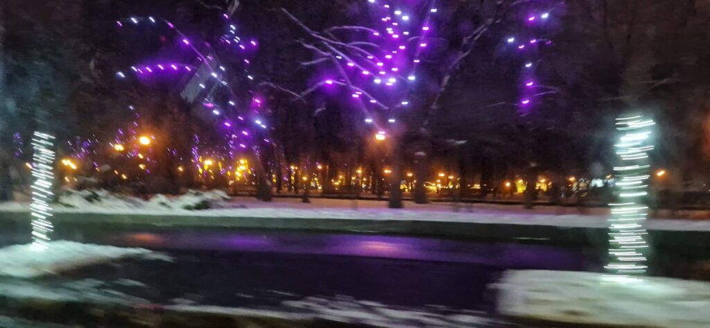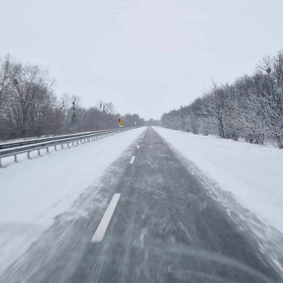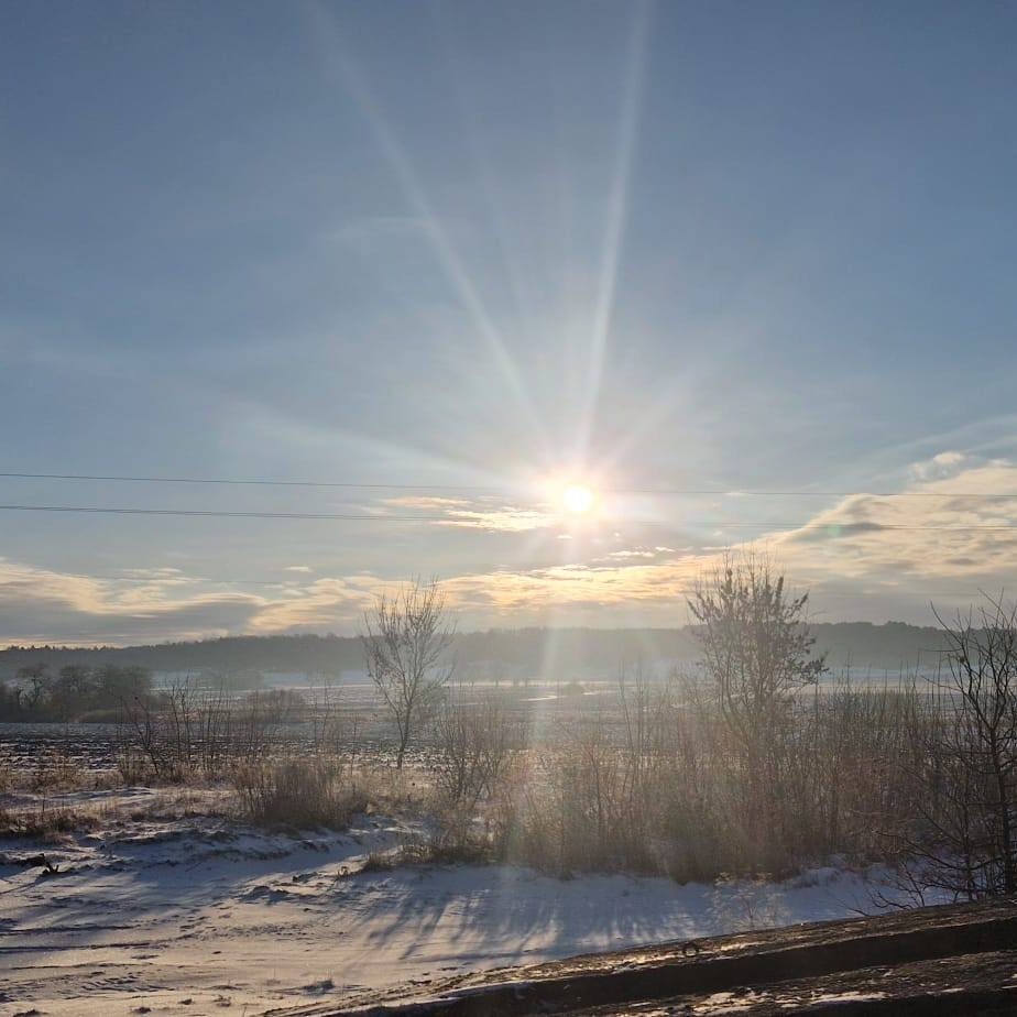Die Fahrt führte über Kyjiw nach Charkiw, durch verschneite Landschaften. Ein atemberaubend schöner Sonnenaufgang.