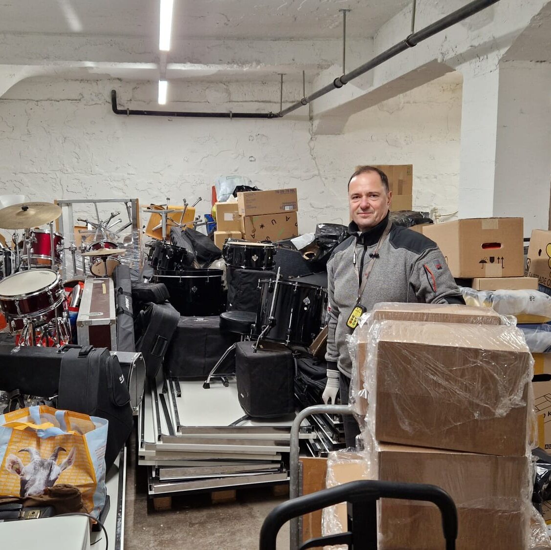 Heute durfte ich dabei helfen, 3,5 Tonnen Musikinstrumente für die Musikschulkinder von Charkiw auszuladen. Eben waren sie noch in unserem Lager, wo Vlad half, sie in den Laster einzuladen. Dann ging es weiter zur Grenze, wo mich Anatolii erwartete. Er spricht sehr gut Polnisch und hilft immer dabei, allfällige Probleme an der Grenze zu lösen. Da der Grenzübertritt am 31. stattfand, ging alles sehr schnell – alle wollten möglichst bald zu ihren Familien nach Hause.