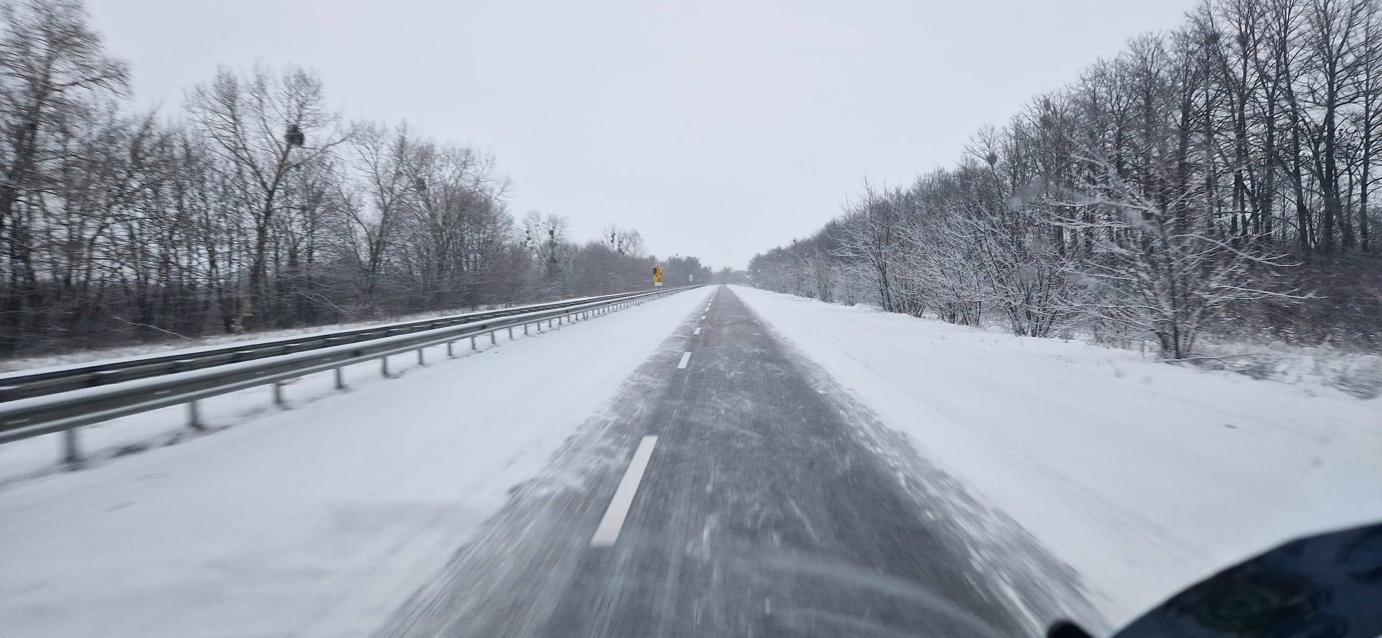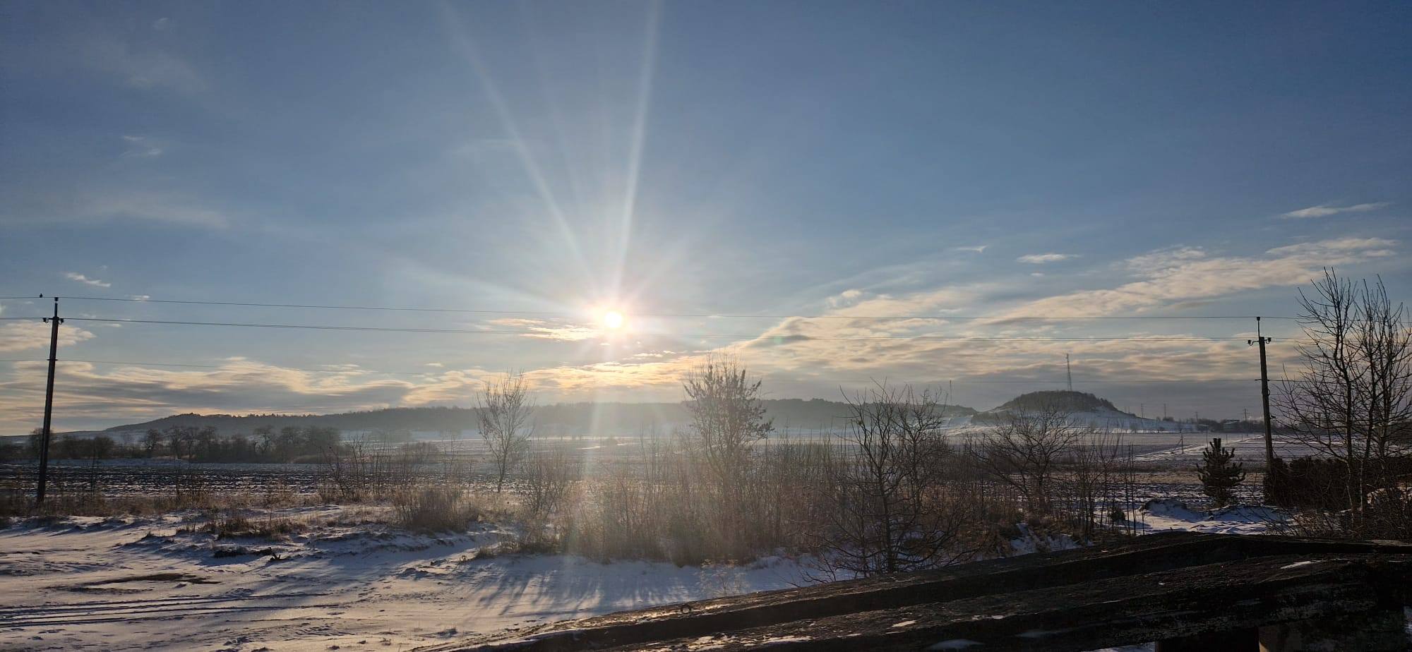 Die Fahrt führte über Kyjiw nach Charkiw, durch verschneite Landschaften. Ein atemberaubend schöner Sonnenaufgang.