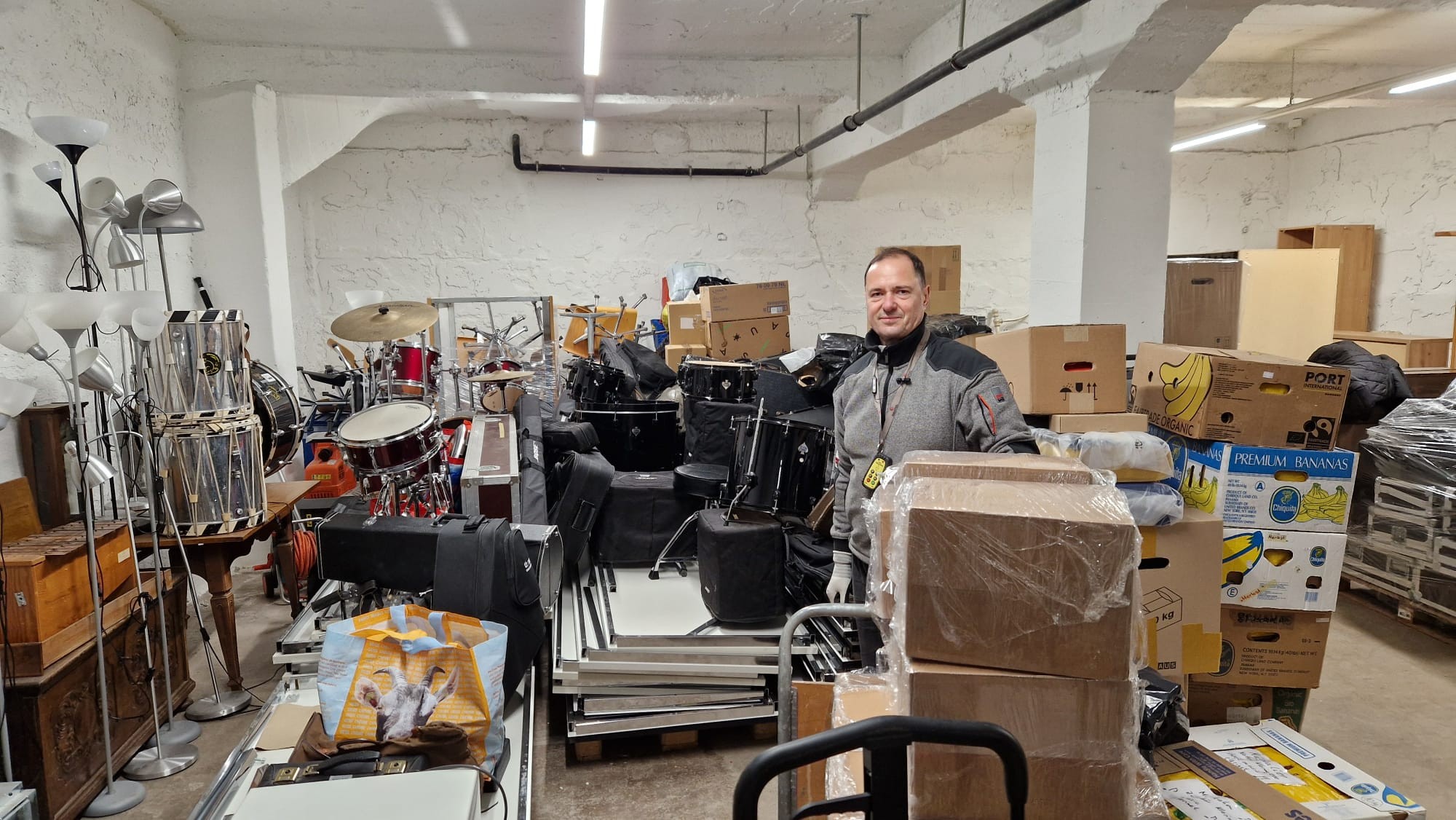 Heute durfte ich dabei helfen, 3,5 Tonnen Musikinstrumente für die Musikschulkinder von Charkiw auszuladen. Eben waren sie noch in unserem Lager, wo Vlad half, sie in den Laster einzuladen. Dann ging es weiter zur Grenze, wo mich Anatolii erwartete. Er spricht sehr gut Polnisch und hilft immer dabei, allfällige Probleme an der Grenze zu lösen. Da der Grenzübertritt am 31. stattfand, ging alles sehr schnell – alle wollten möglichst bald zu ihren Familien nach Hause.