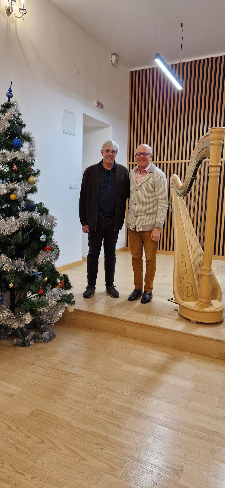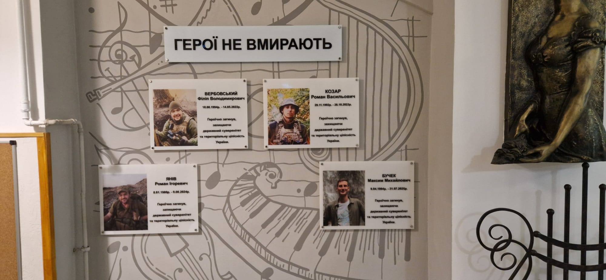 Danach folgte ein Zwischenhalt im Musiklyzeum in Lwiw, wo ich auch übernachten durfte. Ein Bild zeigt mich mit der Harfe, die ich dem Lyzeum überreichen durfte – ein anderes das traurige Bild der gefallenen Musiker.